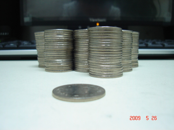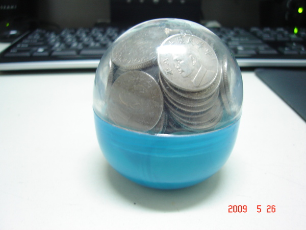 這是我從進駐宿舍開始所存的錢,因為用洗衣機洗一次衣服需要NT$5。就因為這個目的,每次花錢找零只要有出現「5元」,我就會特別的把它存下來 ^^"
