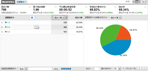 還是使用I.E.來瀏覽的人為最多。不過慶幸的是萬惡的I.E.6 比較少人在用了,大多是以I.E.7為主。
